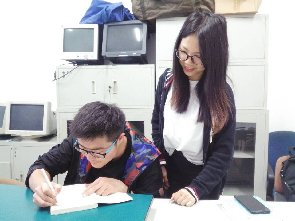 同学们为捐赠的书籍写上寄语