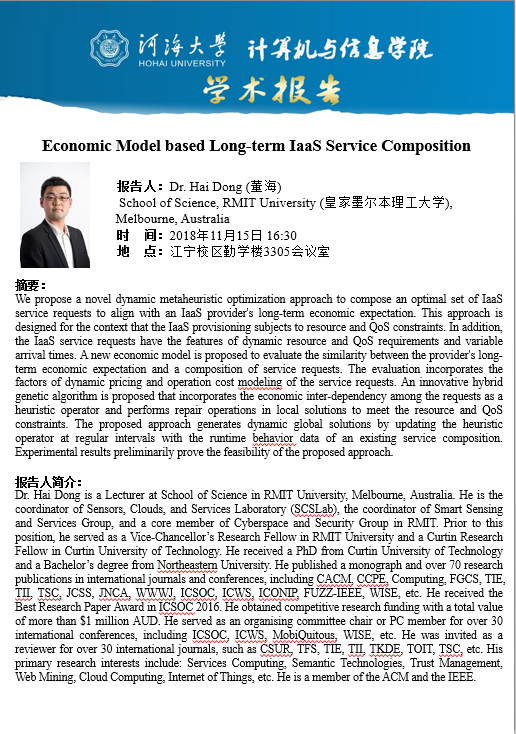 学术报告:Economic Model based Long-term IaaS Service Composition