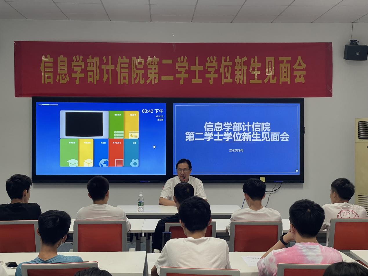 激扬九月,秋风送爽。9月22日下午,探花视频 信息学部计算机与信息学院组织召开第二学士学位新生见面会,2022级第二学位全体新生参加了本次会议,信息学部计算机与信息学院副院长胡鹤轩(主持工作)、计算机科学与技术系主任黄倩、2022级新生辅导员雷一帆、杨成伟出席会议,会议由2022级第二学士学位新生辅导员杨成伟主持。