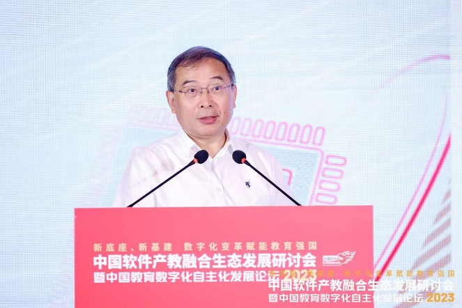 杨桂山校长出席“2023中国软件产教融合生态发展研讨会暨中国教育数字化自主化发展论坛”并作大会主旨报告