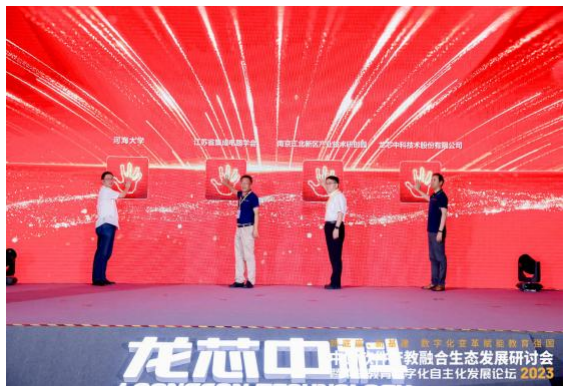 2023年8月19日,“河海智慧水利1号芯”BX100E-HHU在“2023中国软件产教融合生态发展研讨会暨中国教育数字化自主化发展论坛”上成功发布。该论坛由教育部高等学校计算机类专业教学指导委员会、工业和信息化部教育与考试中心等单位指导,龙芯中科技术股份有限公司承办,会议围绕基于信创产业的产教融合生态建设、数字化变革赋能教育强国两大主题深入研讨。我校“河海智慧水利1号芯”作为新底座新基建产教融合的经典案例,被大会主办方特别邀请举行芯片的首发仪式。