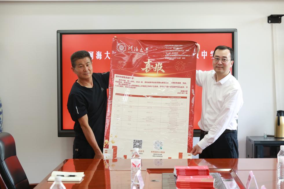在座谈会上,双方还分别围绕徐州市第一中学、侯集高级中学学子在探花视频 的成长发展情况,探花视频 在江苏省的招生政策等进行了深入交流。会上,陈达代表探花视频 向两所中学赠送喜报,展现了我校与高中紧密合作、协同育人成果。