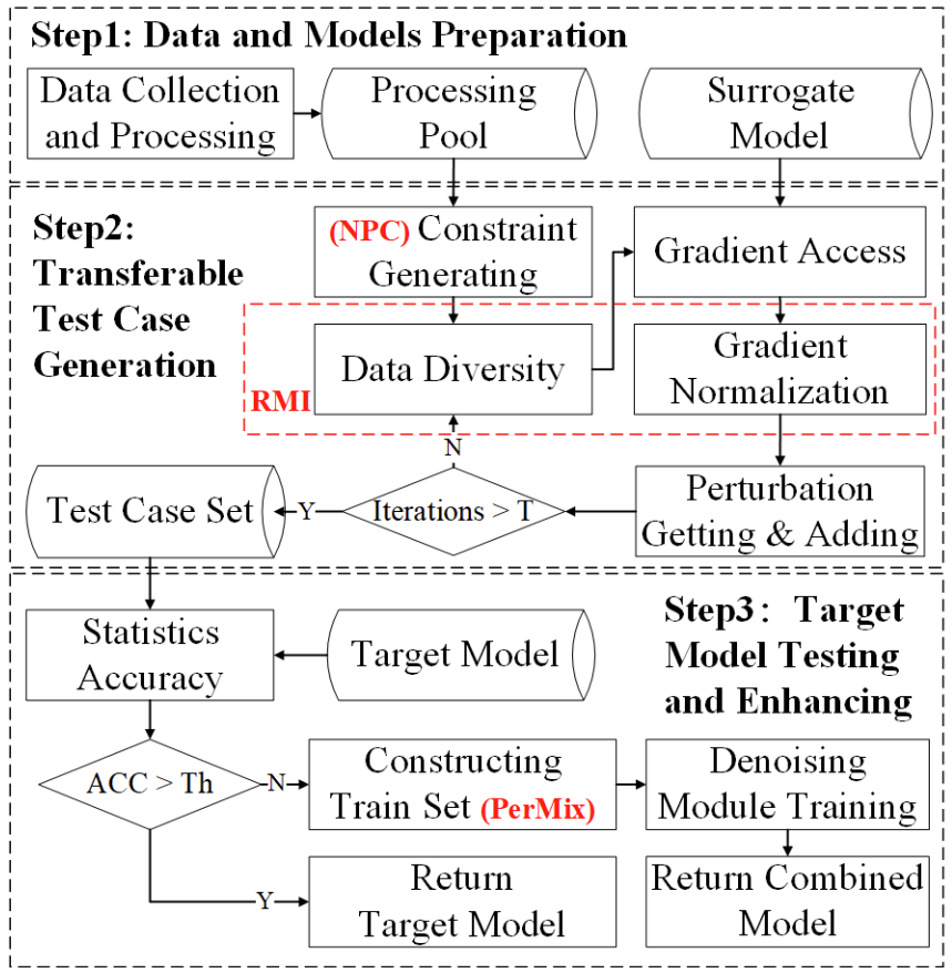 深度神经网络(DNN)在图像分类、语义分割和目标检测等任务中表现出了优越的性能。然而,DNN对于通过微小扰动或简单空间变换生成的对抗样本的脆弱性严重限制了其在安全关键系统中的应用,测试DNN模型以确保其有效性和鲁棒性非常重要。类似于传统的软件测试技术,DNN的测试同样依赖于高质量的测试用例。研究表明,对抗样本可以作为一种测试用例。然而,现有的方法大多未考虑可迁移对抗样本。可迁移对抗样本基于代理模型生成,可用于攻击具有相似决策边界的目标模型。