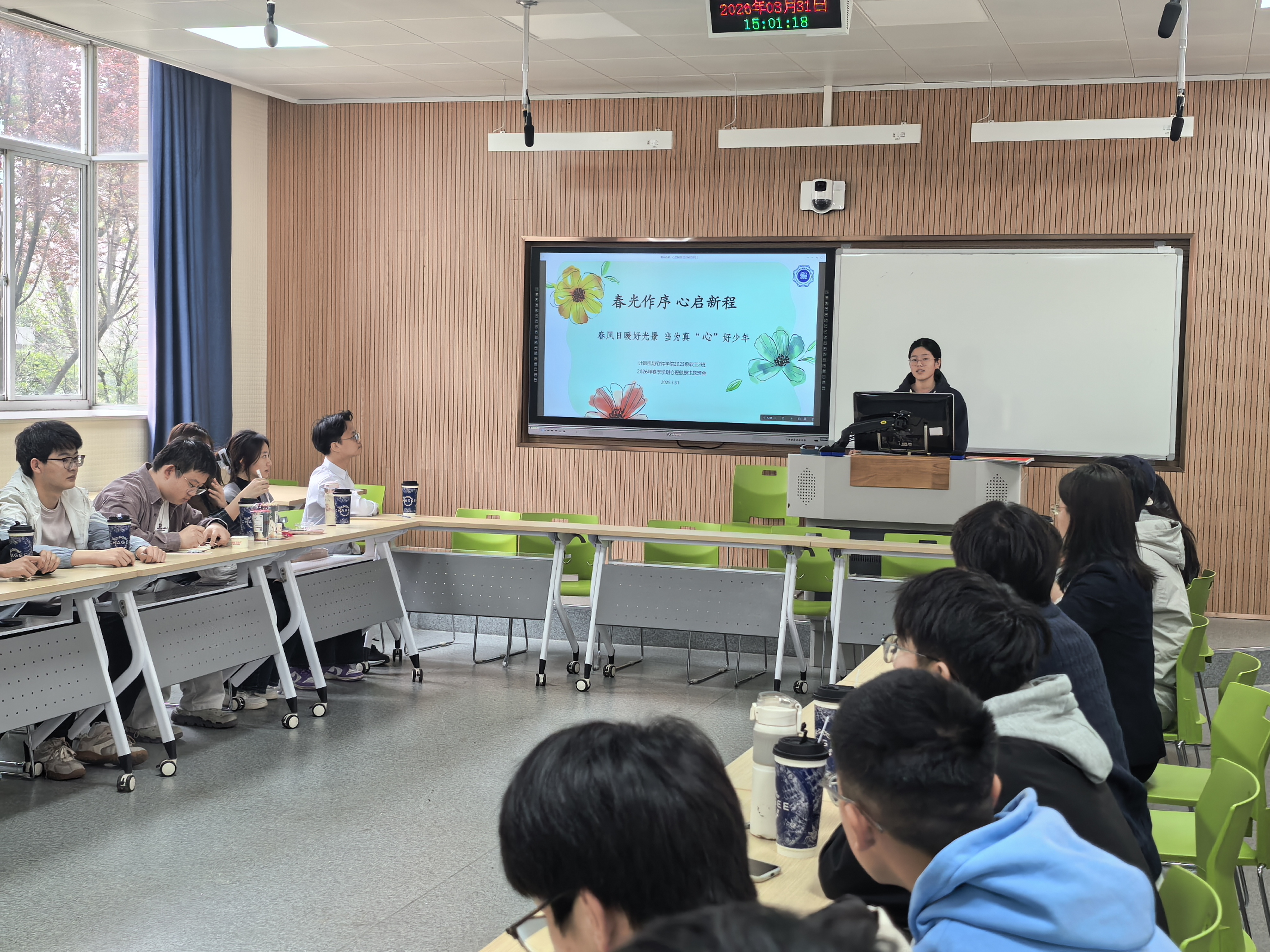 3月31日,学院开展“春风日暖好风景,当为真‘心’好少年”心理主题班会,特邀校纪委副书记吴红参加指导,2025级软工2班全体成员、辅导员黄扬共同参与活动。